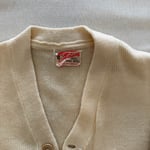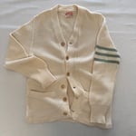 Wool Stadium 70s Cardigan, Stripe detail on L Sleeve, Cream/Mint green, Fits sizes small/medium