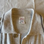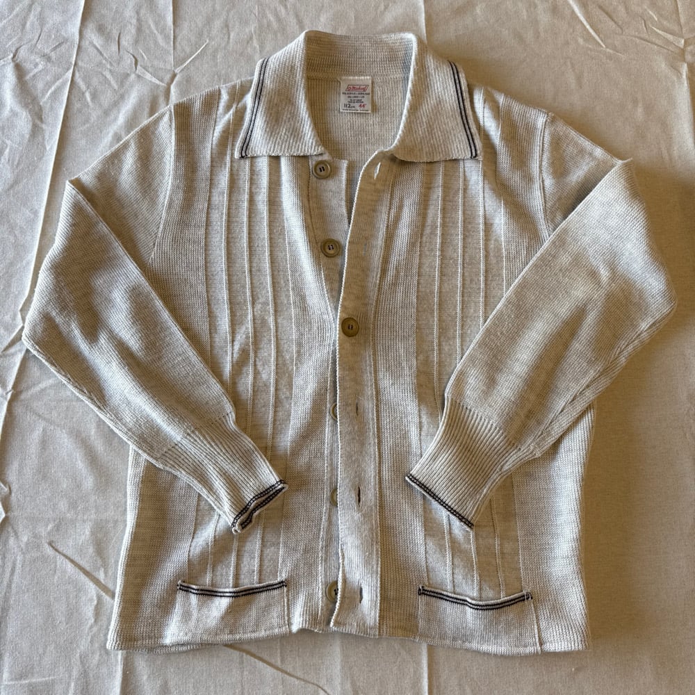 70's/80's Cardigan, Modified Crop to repair, Brown/Off White, Tagged 44' (M/L), Acrylic/Linen Blend