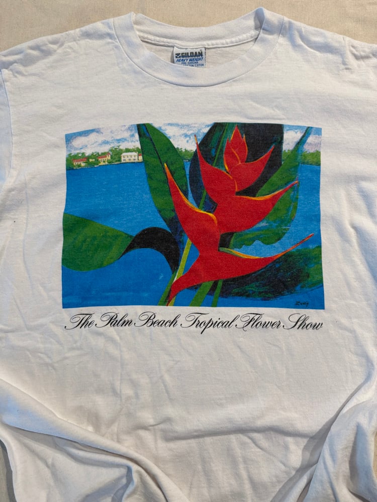 90s Palm Beach Flower show merch tee, Full Birds of Paradise graphic, Gildan Tag Size L (fits more like loose medium)