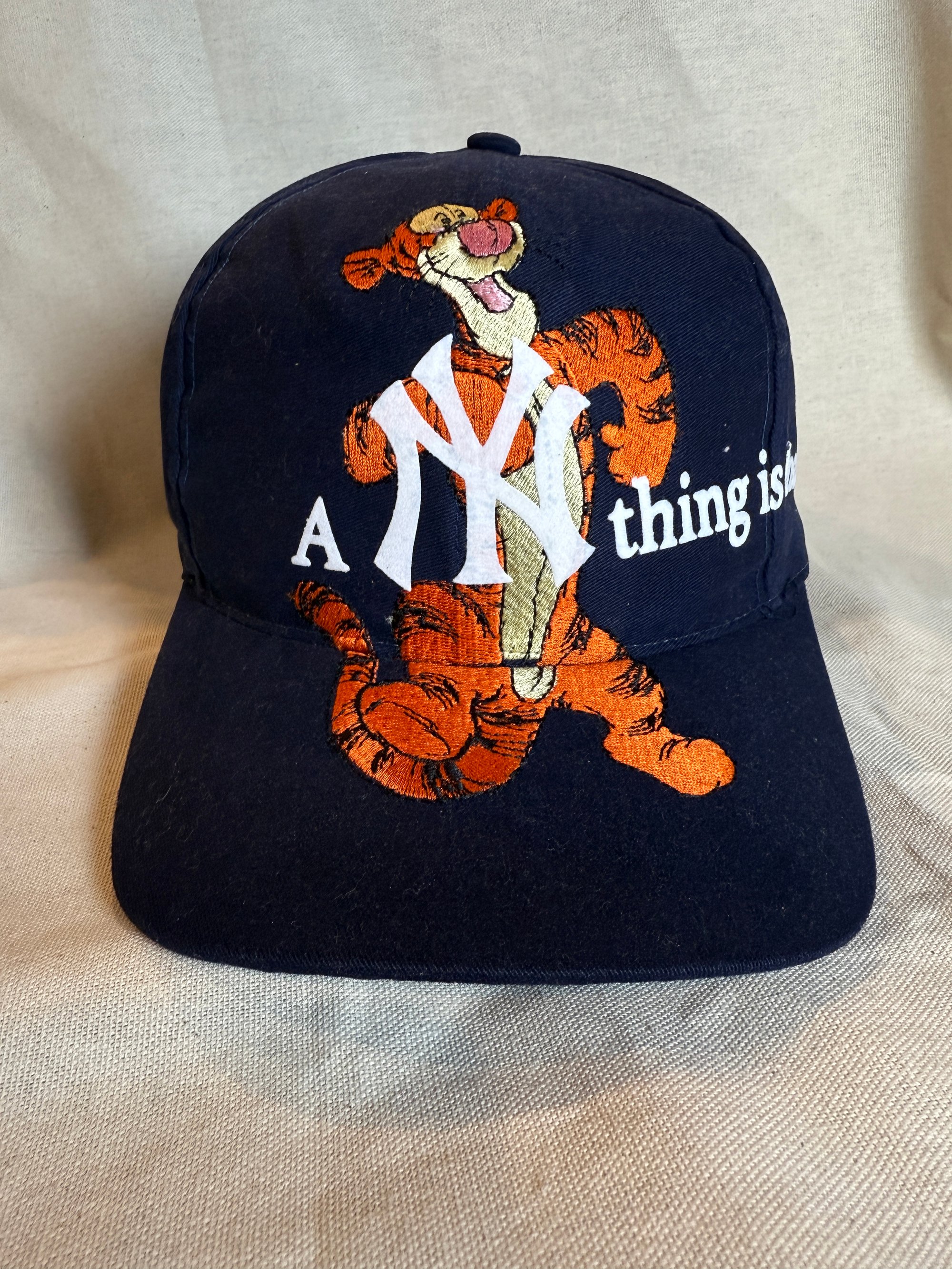 Vintage Disney Store embroidered tigger character cap, "aNYthing is possible" flocked graphic