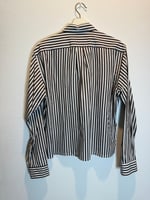 Modern Uniqlo Button Shirt, Crop stitch finished hem, Choc Brown/White, Tagged Size M