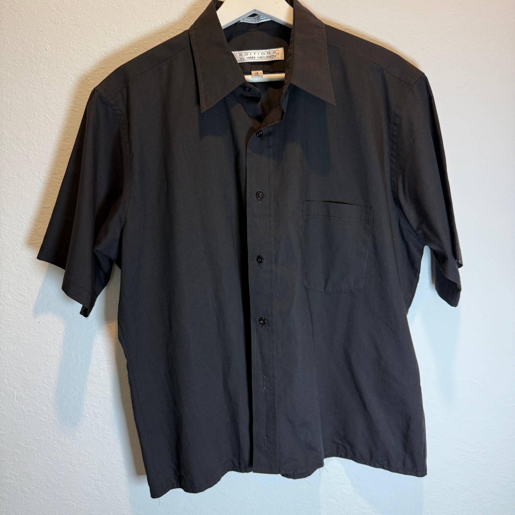 Reworked, Black Cropped shirt, Finished stitch Hem, Fits Size Medium